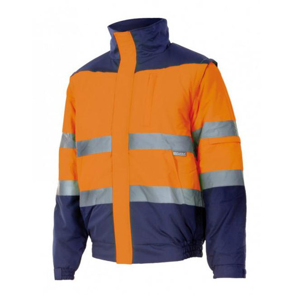 Zapięcie na zamek błyskawiczny z klapą i rzepem. Wodoodporny. Odblaskowe paski na piersi i rękawach. Ukryty kaptur w kołnierzu. Wewnętrzny dekolt z polaru. Odpinane rękawy. Elastyczny pas z regulacją z boku. Elastyczne mankiety i regulacja Velcro® .5 kieszeni: kieszeń na piersi z rurką, 2 kieszenie z przodu na piersi, kieszeń na rękawie, wewnętrzna kieszeń zapinana na zamek.